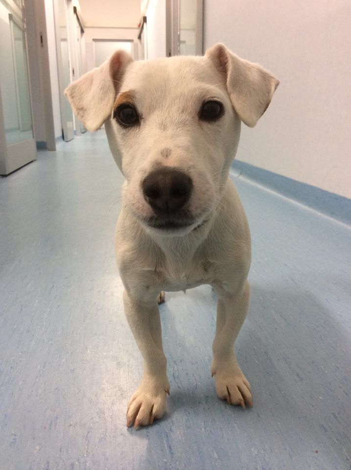 Mi ricordo che anche il dottore aveva il vestito verde ma sopra ne aveva anche uno bianco che mi intimorì un pochino...lo guardai con gli occhi pietrificati, lei gli disse qualcosa che non capivo e lui mi prese in braccio con la cura di chi sfiora un minuscolo cristallo e mi portò in una sala buia...io e lui, da soli, con il dolore che continuava sempre più forte...lui mi premeva la parte dolente (e so che anche il suo cuore batteva forte...) ed io per non urlare gli leccavo la mano ...la mia zampina era rotta e per tanti giorni a seguire venivo riportato in quel posto, dove c’erano quelli con i vestiti verdi (lui sempre con sopra quello bianco) che si prendevano cura di me.
